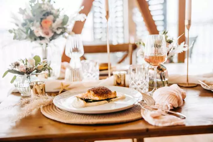 Ihr kennt bestimmt den Spruch „Liebe geht durch den Magen.“ Bei kaum einer Gelegenheit wird der Wahrheitsgehalt dieser Aussage so deutlich wie bei einer Hochzeit. Egal, ob ihr für eure Hochzeitsgesellschaft ein Buffet, ein Gänge-Menü oder ein Flying Dinner plant, das, was diese österreichischen Hochzeitscaterer auf die Teller zaubern, wird eure Gäste begeistern. Und obwohl nichts gegen das klassische Bierchen oder den guten alten Spritzwein spricht, kann es schon sein, dass man am Tag der Hochzeit auch etwas Besonderes trinken will. In dieser Galerie findet ihr Kreationen von Caterern und Barkeepern aus ganz Österreich. Also schnappt euch ein Getränk eurer Wahl, scrollt durch die Bilder und lasst euch schon mal in Feierlaune versetzen. Auf euch!