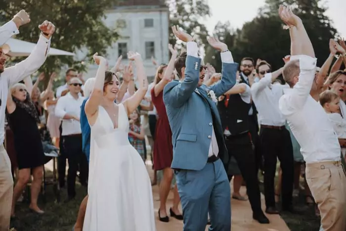 Eine Location wie das Schloss Fridau im niederösterreichischen Ober-Grafendorf ist das ideale Setting für eine solche Hochzeit. Der prächtige Park eignet sich hervorragend als Festivalgelände, auf dem ein großer alter Baum für ausreichend Schatten bei der Trauung sorgt und somit die Main Stage bildet.