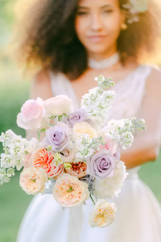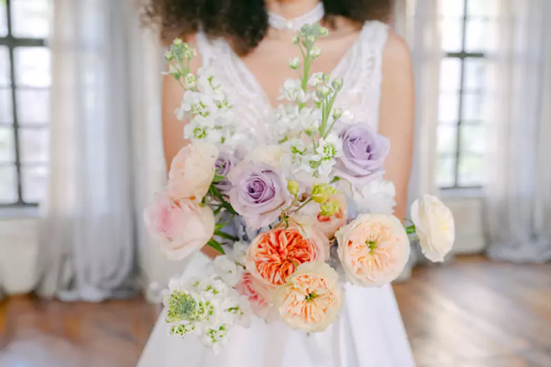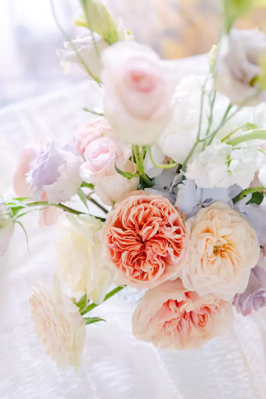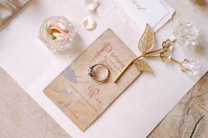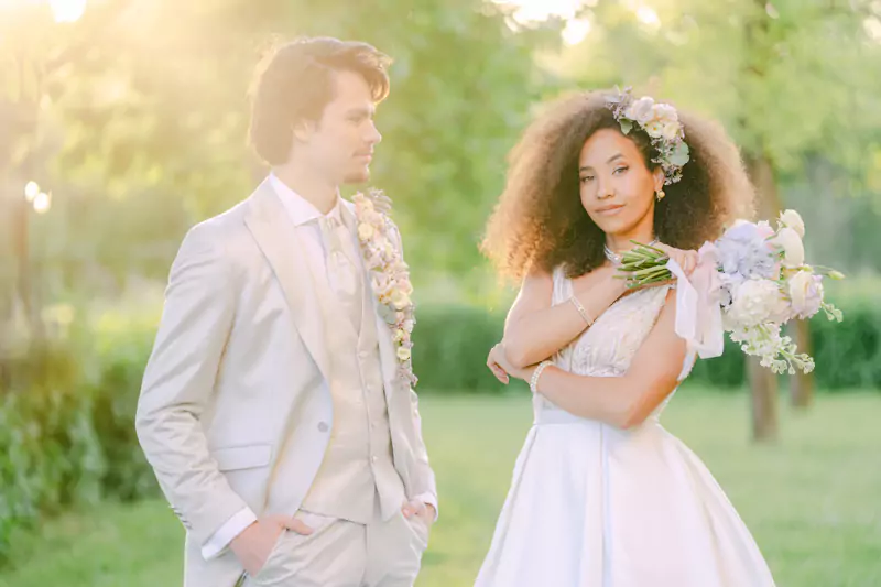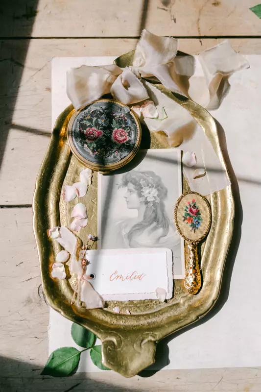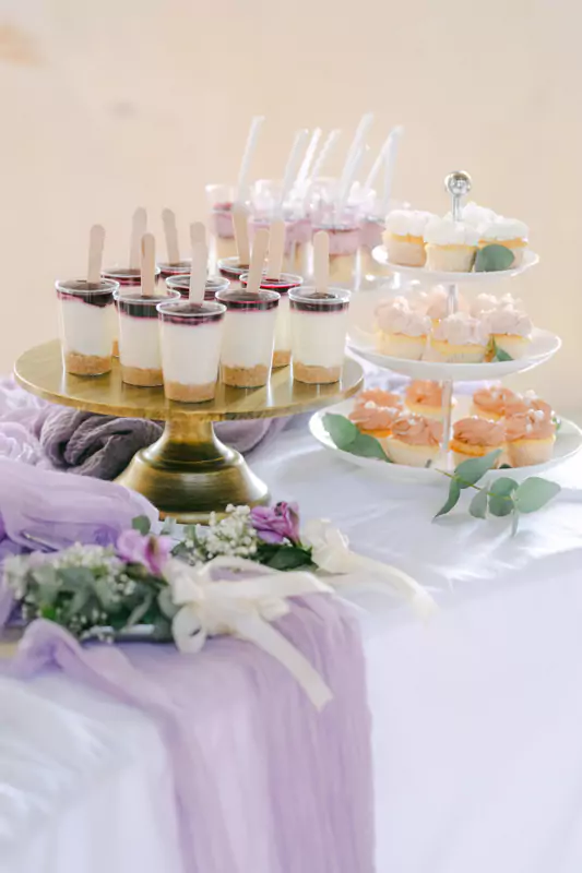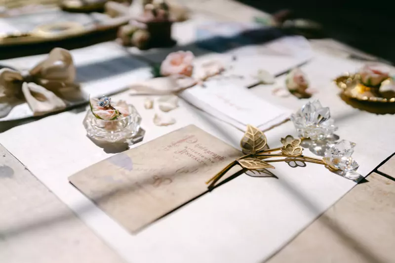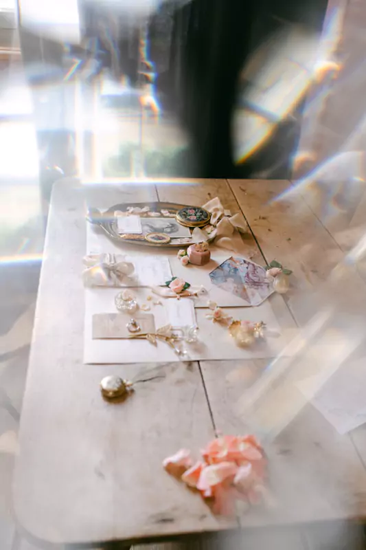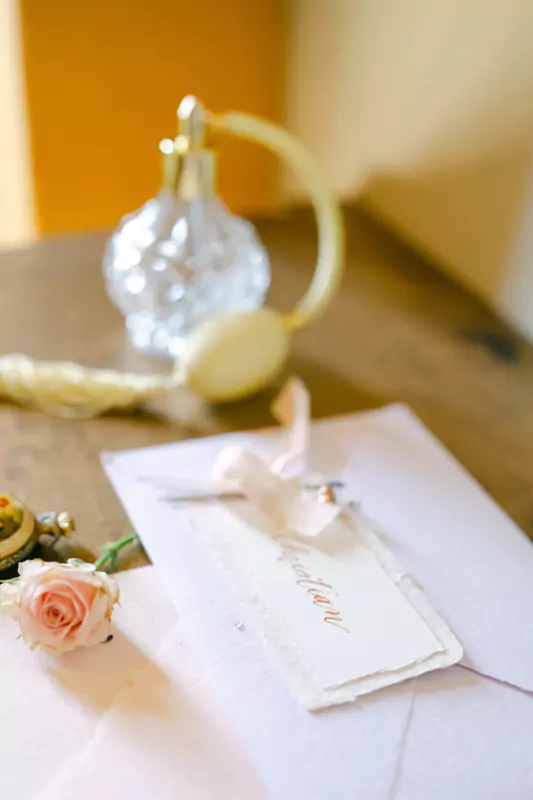 Die geschwungene Festtafel erstrahlt in zarten Lavendel- und Rosétönen – eine harmonische Farbkomposition, die natürliche Eleganz mit einem Hauch von Nostalgie vereint. Jedes Detail ist liebevoll arrangiert: von der filigranen Hochzeitspapeterie mit nostalgischem Flair bis hin zu historischen Elementen, die wie Relikte einer längst vergangenen Zeit wirken.