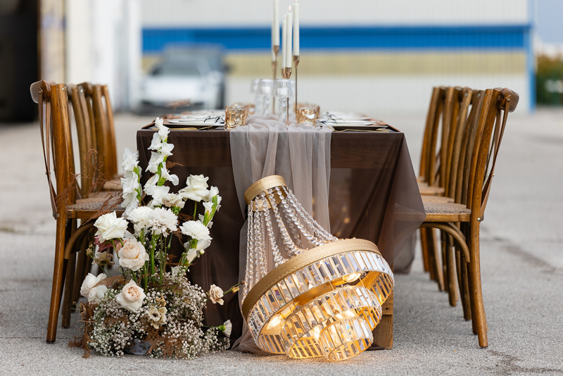 Ready to take off? Diese Hochzeit im Hangar verbindet große Gefühle mit der Liebe zur Freiheit der Lüfte. Zwischen historischen Propellermaschinen und weitläufiger Industriearchitektur entsteht ein Fest, das Eleganz und Abenteuer vereint. Meterlange Stoffbahnen in zarten Ivory-Tönen verwandeln den Hangar in eine sanfte Hochzeitskulisse. Kronleuchter, warmes Kerzenlicht und moderne Lichtinszenierung schaffen eine glamouröse und zugleich leichte Atmosphäre.