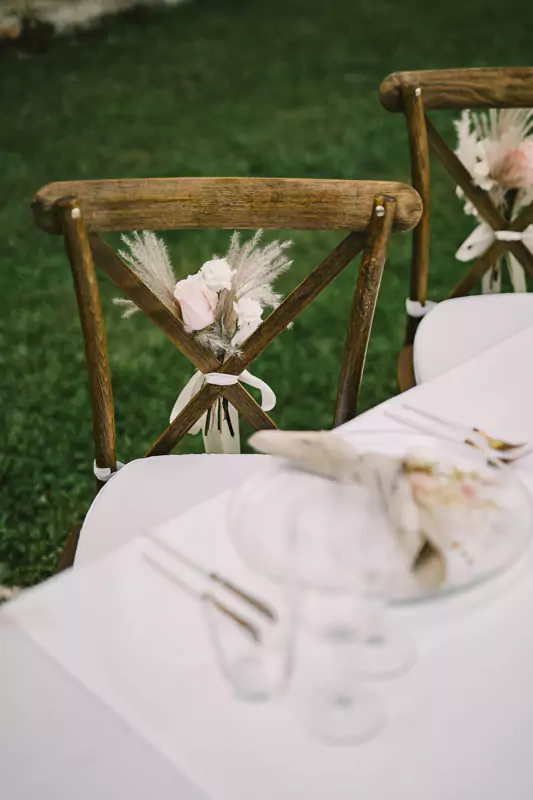 Trockenblumen, stimmungsvolle Lichter und ein traumhaftes Brautpaar – die Hochzeit von Sabrina und Jörg verzaubert mit einem einzigartigen Stil. Das Paar träumt von einer modernen Hochzeit in zarten Rosatönen, komplett ohne grüne Akzente. Gemeinsam mit der talentierten Floristin schafft das Paar ein wundervolles Blumenkonzept – das dann am großen Tag nach und nach Gestalt annimmt. Das individuelle Konzept zieht sich gekonnt durch die gesamte Hochzeit – vom Brautstrauß über den Tischschmuck bis zur Trauungszeremonie und dem Haarschmuck der Braut. Auch die Papeterie ist harmonisch auf das florale Design abgestimmt und verleiht dem Tag eine durchgängige Eleganz.
