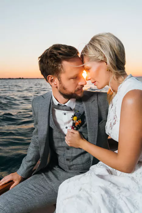Was gibt es im Sommer in Vorarlberg Schöneres, als ein Sonnenuntergang am Bodensee? Warum nicht auch die freie Trauung direkt am Seeufer abhalten, der Braut ein Ständchen mit der Gitarre spielen und danach auf einem kleinen Boot zu zweit die sanfte Brise auf See genießen? Die Sonne, die langsam am Horizont verschwindet, sorgt für eine unglaubliche Stimmung und es entsteht eine absolut beeindruckende Kulisse für Hochzeitsfotos im Abendrot.