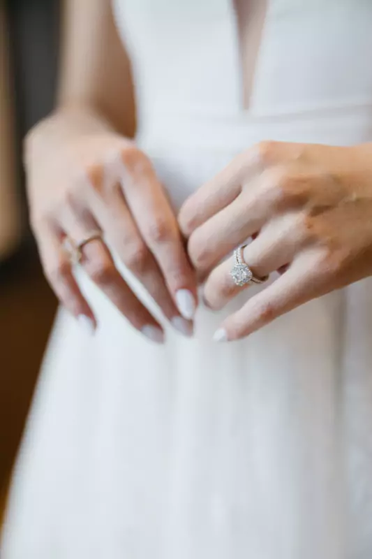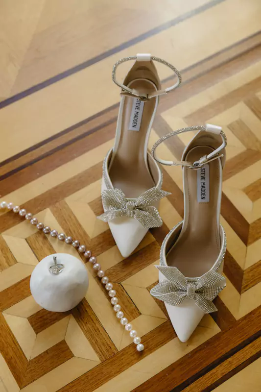 Die pure Eleganz durchzieht jeden Moment des Tages. Die Braut erstrahlt in einem fließenden, cremeweißen Kleid mit tiefem Ausschnitt und moderner Silhouette. Eine weiße Faux-Fur-Jacke umhüllt sie sanft – perfekt für eine Winterhochzeit in Wien. Dezente Perlenohrringe und eine passende Halskette setzen edle Akzente, während ihr locker gewelltes Haar ihre natürliche Ausstrahlung unterstreicht. An ihrer Seite der Bräutigam, stilvoll in einem eisblauen Anzug. Seine Wahl ist mutig und raffiniert – ein harmonisches Statement, das das Farbkonzept perfekt ergänzt.