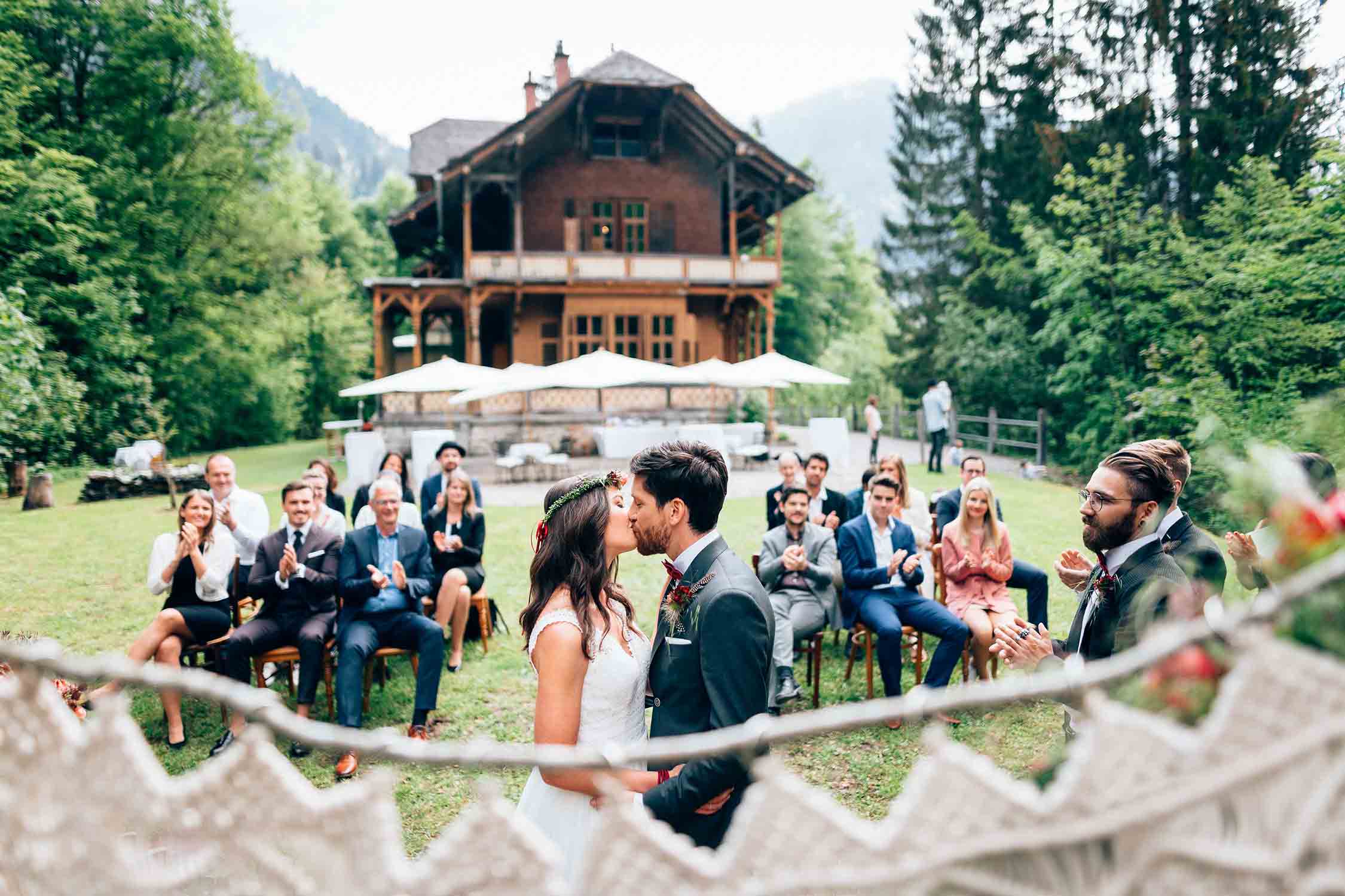 In der Villa Maund natürlich – im Rahmen einer freien Trauung unter den Bäumen und am Fuße meines Lieblingsberges „Üntschenspitze“.